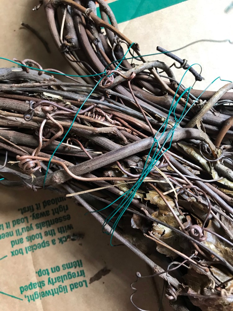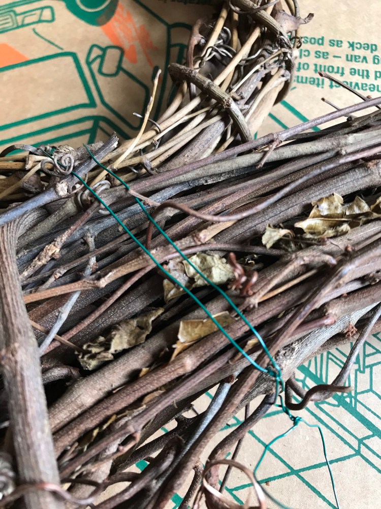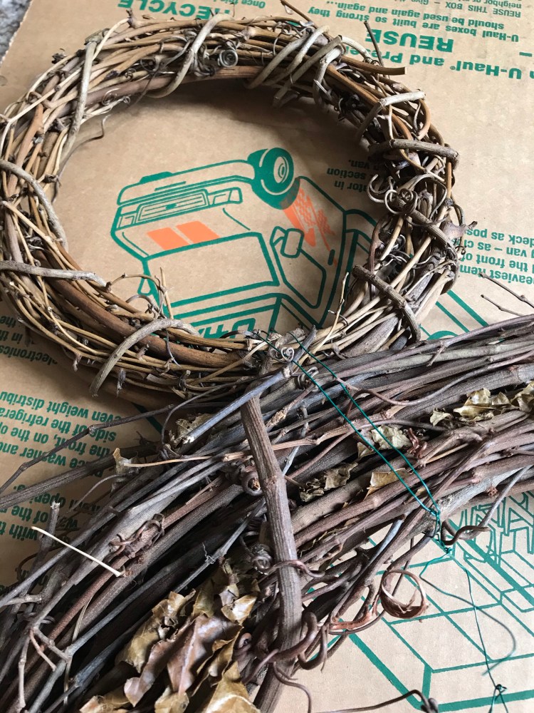 All you need is 1 24 inch grapevine wreath and 2 smaller grapevine wreaths for the ears. I’m not sure what size my ears were, but they’re probably 6 or 8 inches. It’s honestly a preference thing, depending on how you want your wreath to look.
