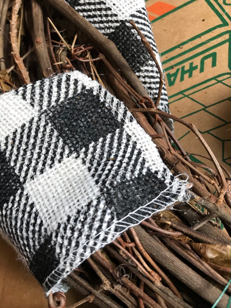 Next is the burlap ribbon. You don’t have to add this, but I already had this buffalo check ribbon in my supplies and wanted to try it and see what it looked like! I was pretty happy with how it turned out!